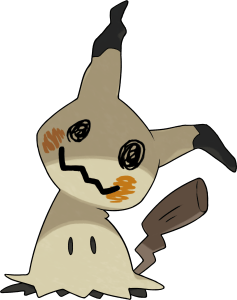 This Pokemon may look a little familiar as Mimikyu the ghost type is mimicking the mascot of Pokemon Pikachu. We put so much love into Pikachu that this little guy disguised himself as the Yellow Mouse Pokemon to feel a little love. Though its true form is nought more then a shadowy beast it clearly tried hard to embody Pikachu‘s look.