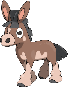 This little horse is Mudbray and is the first form of Mudsdale. Clearly less majestic than its evolution but quite cute, this little guy is also ground type.