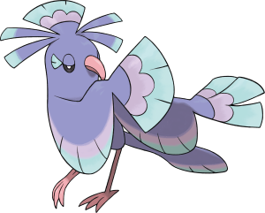 Oricorio is special in that this little bird has 4 different forms based on each of the islands. This little bird is either Fire, Electric, Psychic, or Ghost type with the typical Flying type attached.