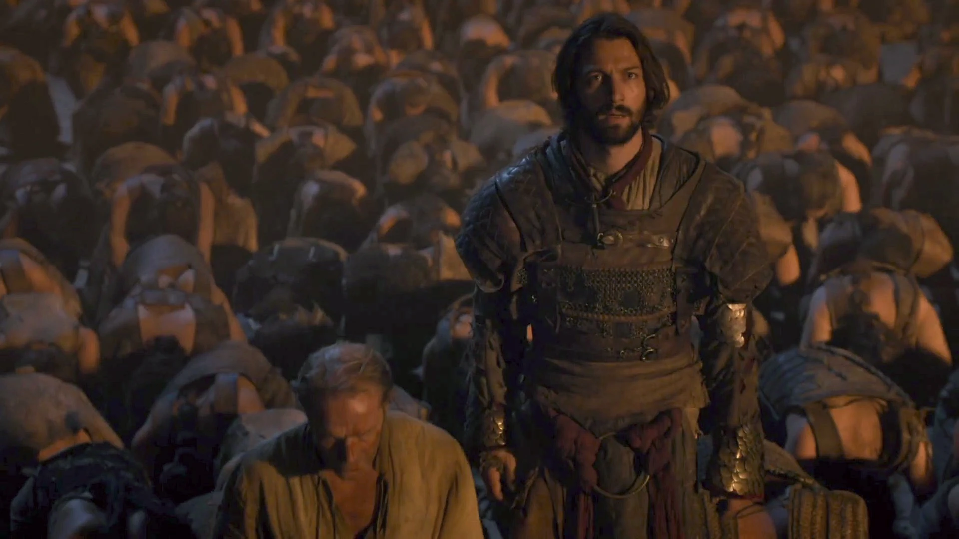 Tyrion Lannister is quickly finding himself in hot water. He arranges a meeting with the slave masters of Astapor, Volantis and Yunkai, against Missandei and Grey Worm’s wishes, to discuss a deal. Tyrion proposes that all the cities, excluding Meereen, will have seven years to end slavery allowing them an easier transition opposed to abolishing it in a day. They will be compensated for losses, and the masters must stop their support of the Sons of the Harpy. Tyrion then leaves the masters with time to deliberate his offer, however he is met by former slaves of Meereen who disprove on any negotiation with the masters. The former slaves ask Grey Worm and Missandei their opinion, and they reluctantly side with Tyrion on the matter. They continue to ask when their Queen will return, but Tyrion can only assure them “soon.” While Tyrion sees the issue from a Westerosi-scholarly perspective, Grey Worm and Missandei see the issue from their first-hand experience with the masters; thus in private they warn him that the masters will try to use him and the situation to their benefit.